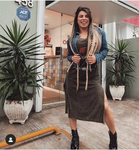 Vestido marmorizado estilosíssimo pra galera do rock.